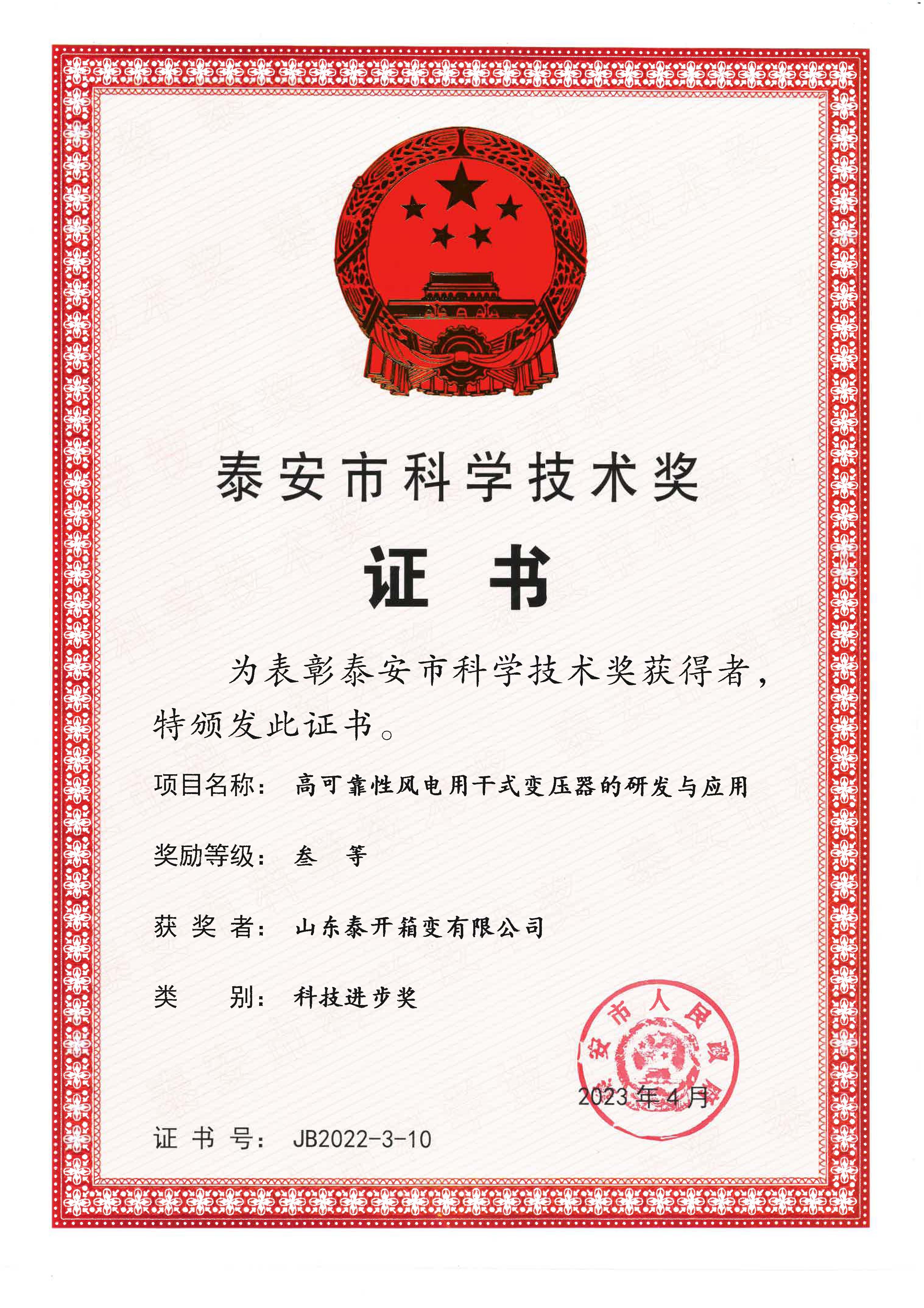 泰安市科技进步奖